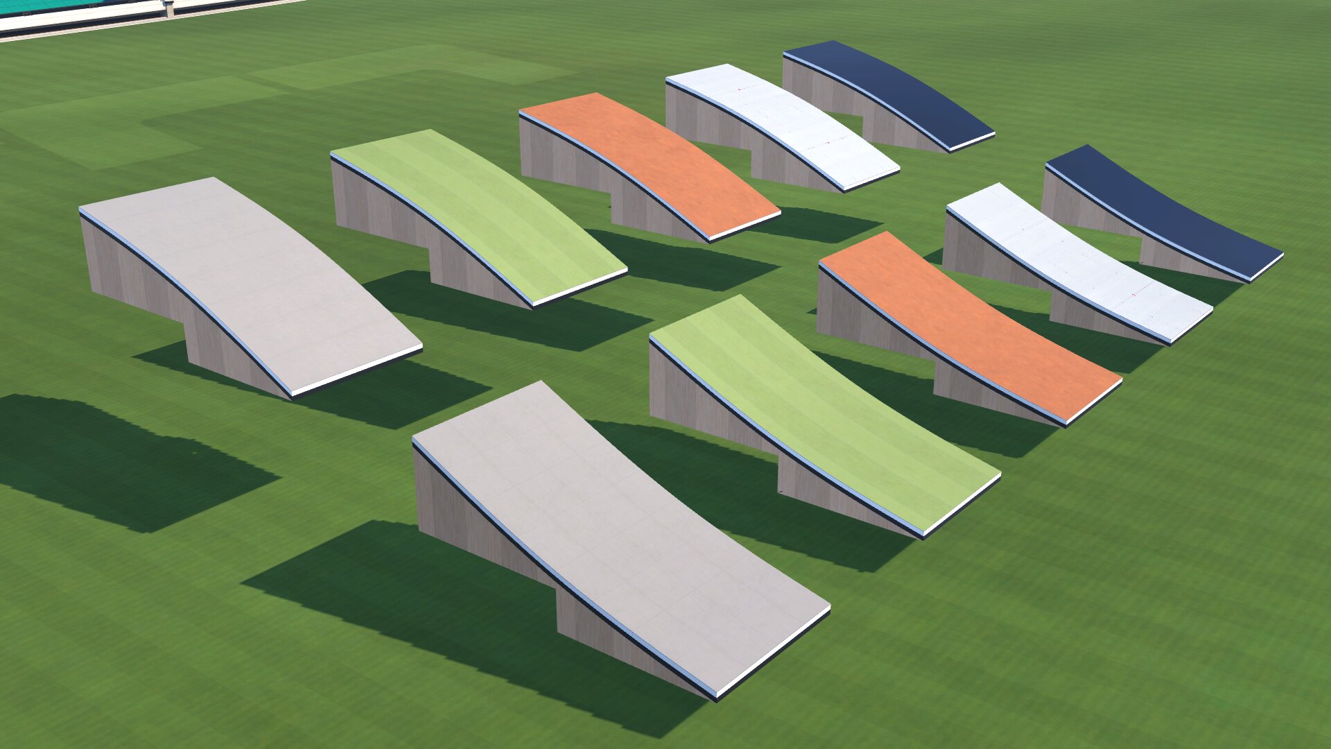 This is another set of BiSlope items. These transition from BiSlope (shallow slope) to regular sloped platform blocks. They match up well with sloped roads.