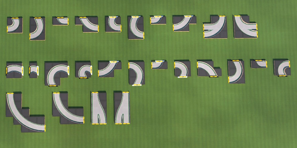 Items are matching Roadtech, RoadDirt, RoadBump and RoadIce, but you can also combine them with almost any flat platform block from TechBase, DirtBase, IceBase and GrassBase, TrackWall and DecoWall.