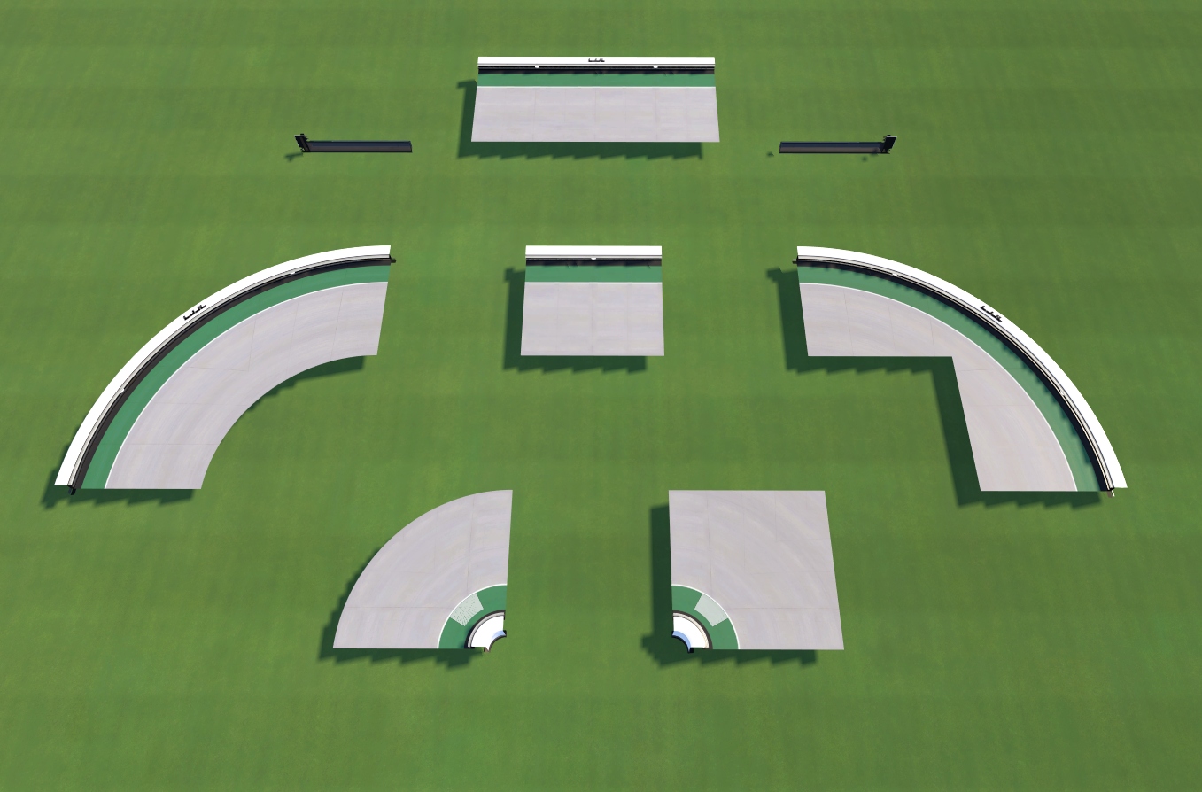 A set of road blocks, chopped down the center so that they may be used as border blocks for platforms.