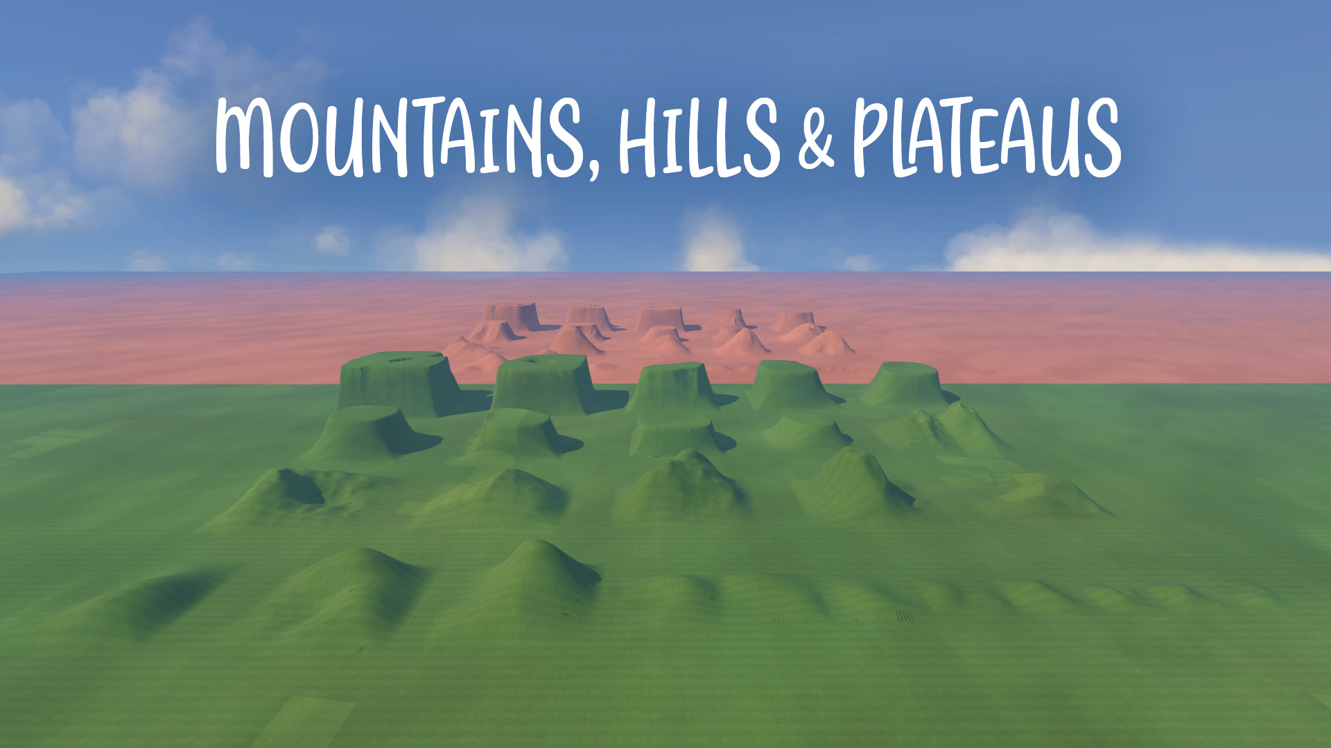 All items are unique so if you want to use a dirt hill as a grass (or snow, ...) mountain you can scale it yourself and change the material in the mesh modeler.