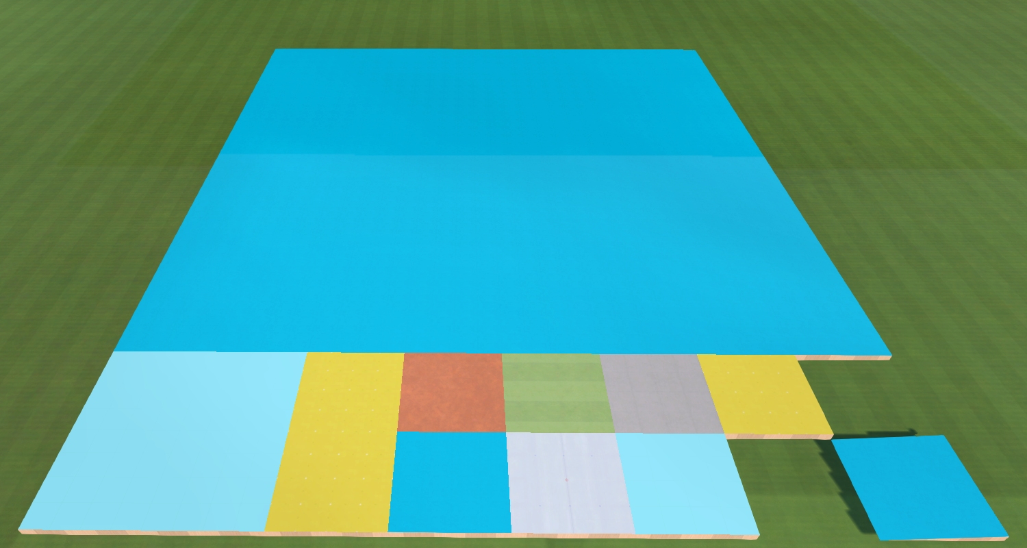 These items decrease the depth of the water blocks in Trackmania 2020, allowing your car to go faster in shallower water. Each item comes in a variety of sizes and materials. The largest items (8x8) are designed for quick application to large pools. The ramps enable transitions between the original depth and shallower water. The darker blue/cyan/azure material is CustomPlastic, which provides more grip at the cost of reduced speed.