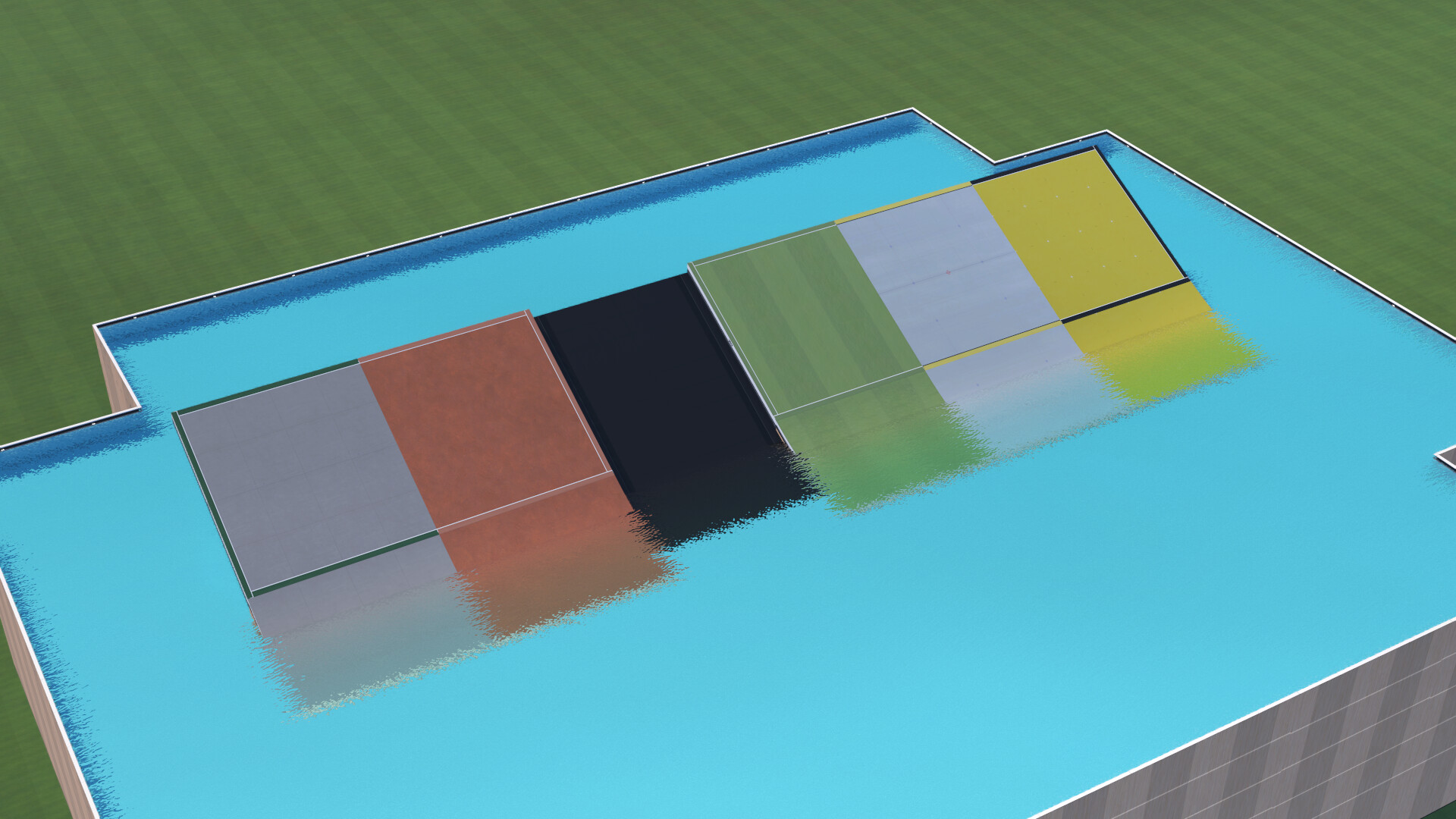 Transitions between pool bottom and sloped platform.