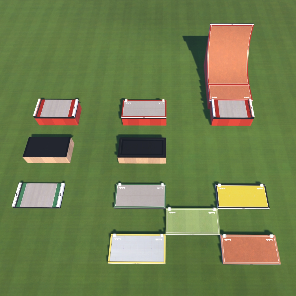 You can combine the RoadTechHalf with any of the PlatformXXXHalf, additional DecoWall and TrackWall items included.