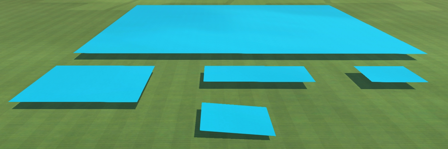 These items decrease the depth of the water blocks in Trackmania 2020, allowing your car to go faster in shallower water. Each item comes in a variety of sizes and materials. The largest items (8x8) are designed for quick application to large pools. The ramps enable transitions between the original depth and shallower water. The darker blue/cyan/azure material is CustomPlastic, which provides more grip at the cost of reduced speed.