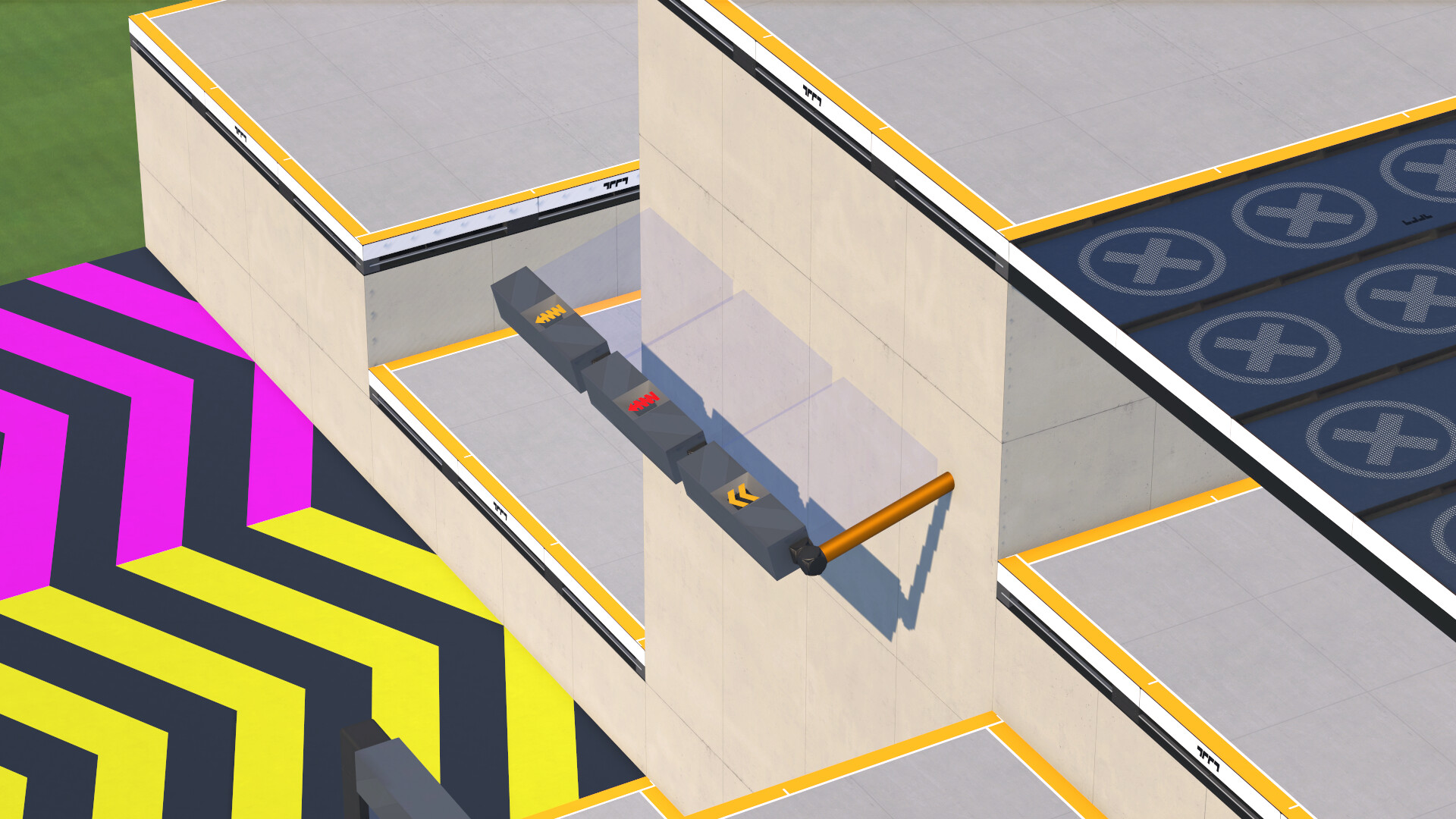 ⚠️ The car needs to be parallel to the surface/perpendicular to the gate in order for the bumper force to work properly. This is much more relevant for gates than for platforms, as even a minor change of car's rotation may be disastrous. Be careful and remember to cutproof.